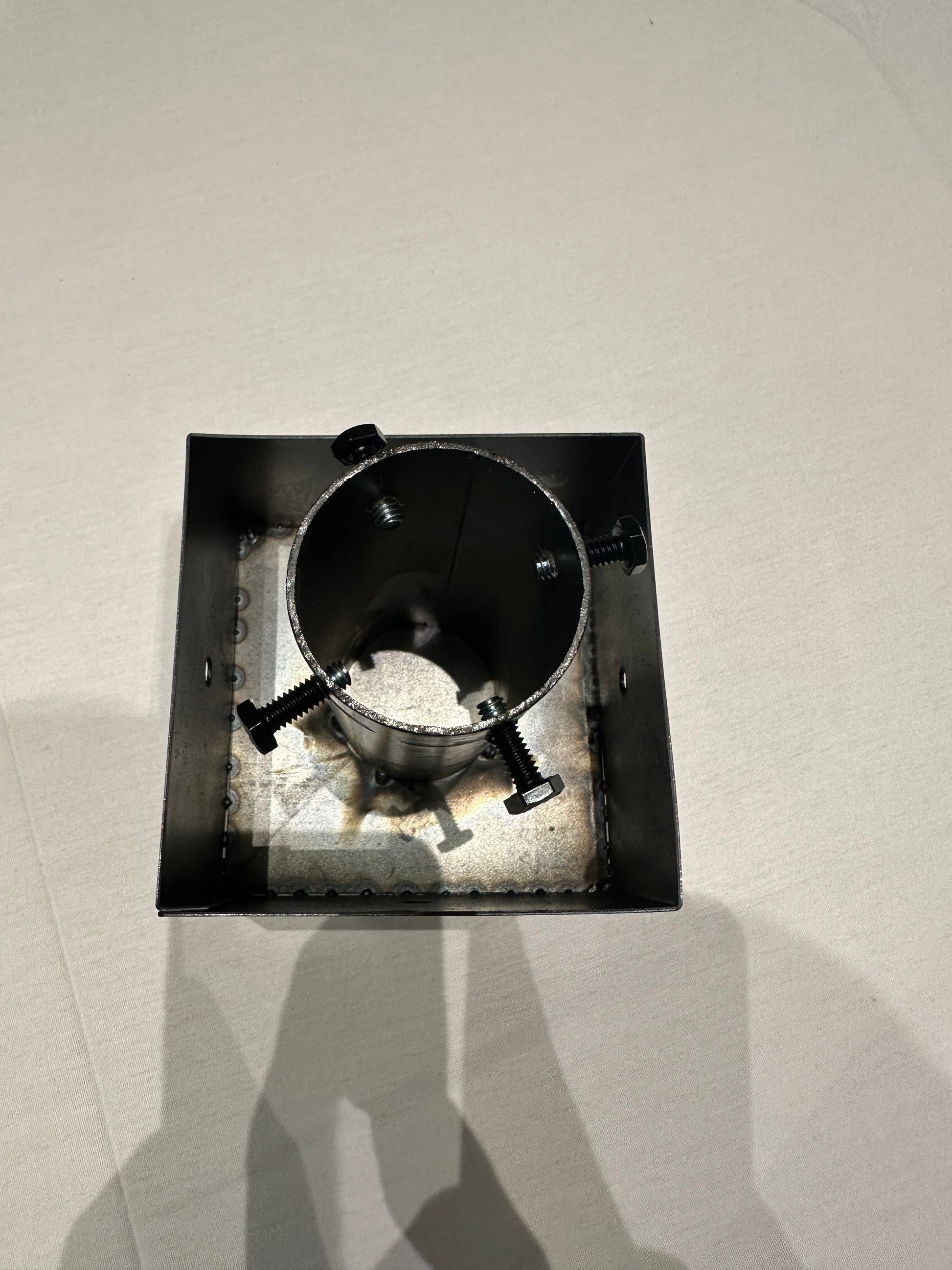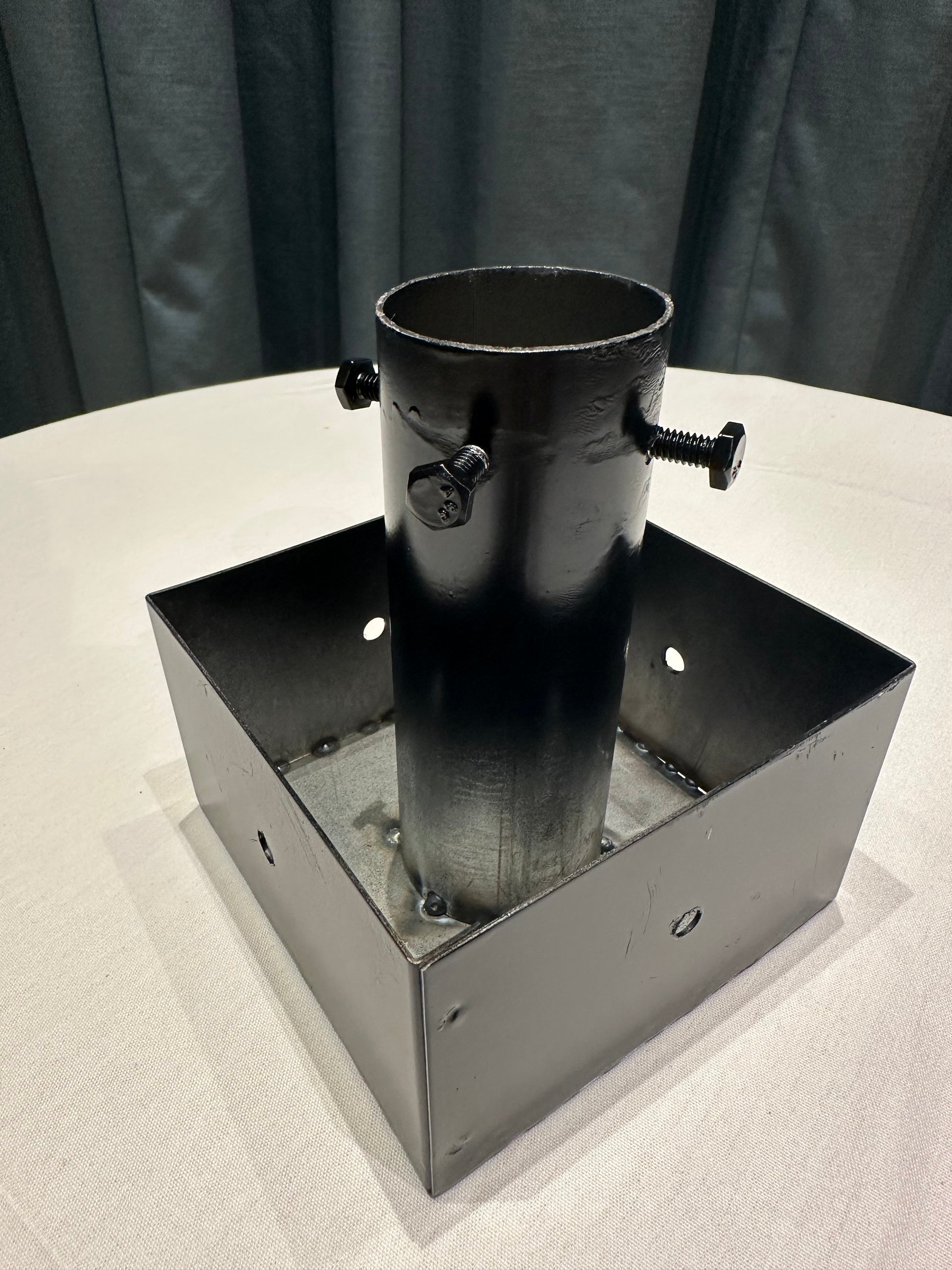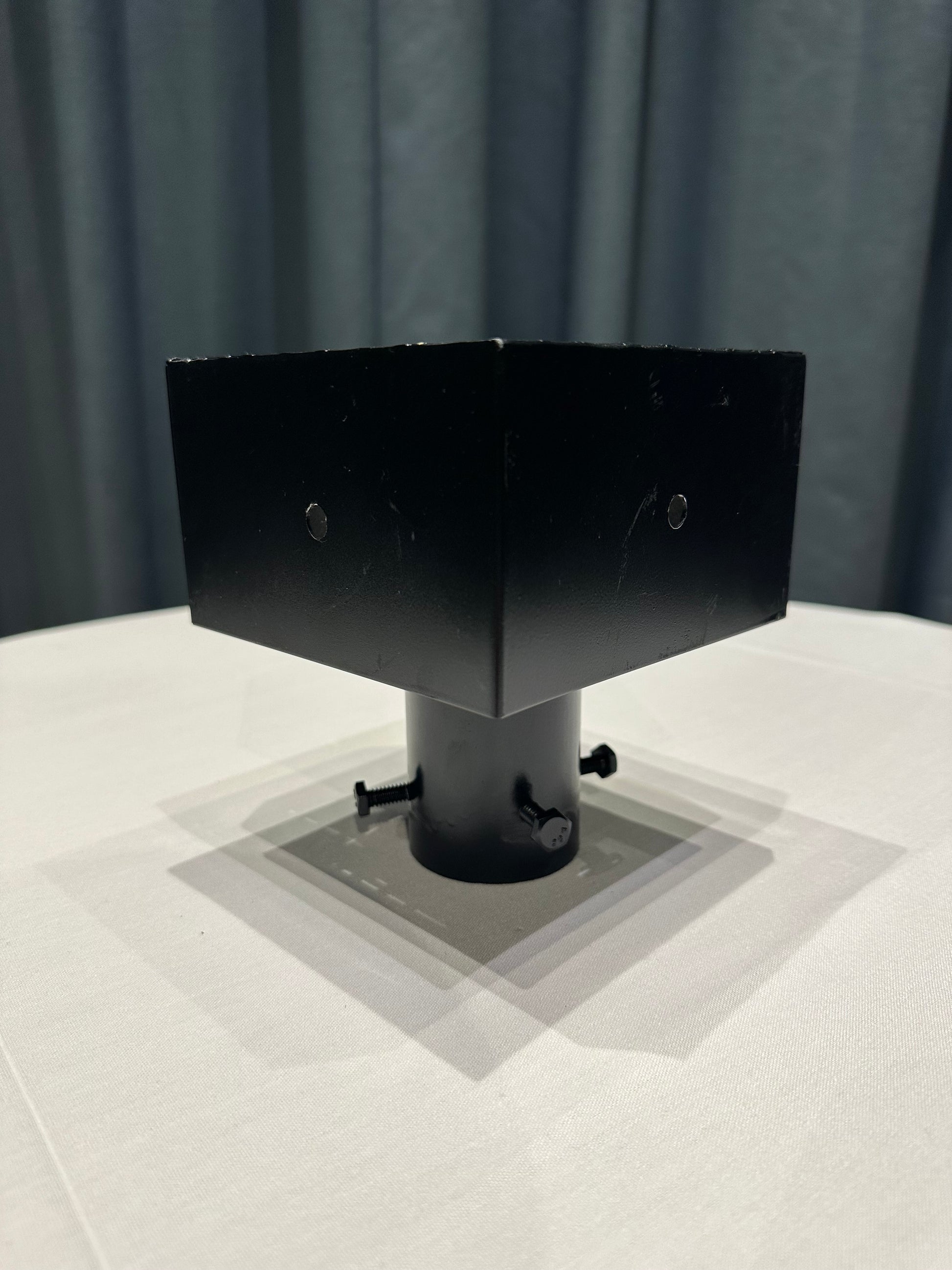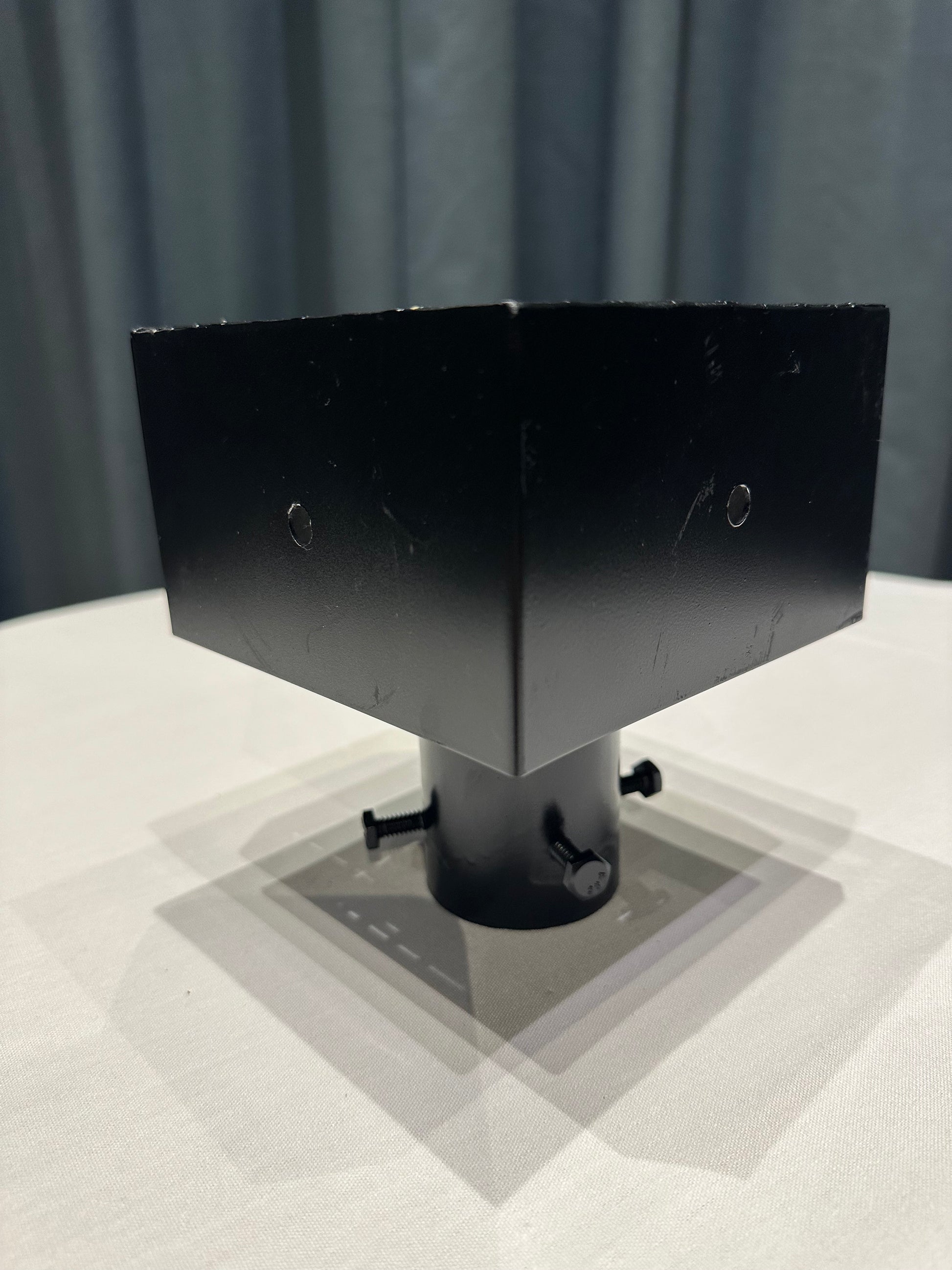 5" x 5" four sided mount with screws to attach to pipe and drape upright or speaker stand. Specifically created to be used with Chauvet H1, Q1N and EZ Pin lights.